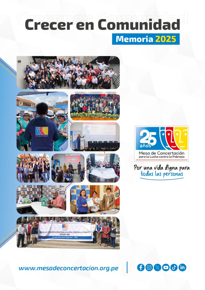 En el 2025, la MCLCP logró articular 693 organizaciones del Estado y la sociedad civil en los grupos de trabajo nacionales y comités ejecutivos regionales. En el nivel nacional, el proceso participativo permitió formular agendas clave, entre ellas propuestas integrales para la salud, la niñez y adolescencia, la juventud, el envejecimiento con dignidad y la gestión inclusiva del riesgo de desastres. Estos aportes constituyen insumos fundamentales para los futuros Acuerdos de Gobernabilidad 2027-2030, con el objetivo de que las organizaciones políticas prioricen la reducción de la pobreza y la protección de derechos en sus planes de gobierno.