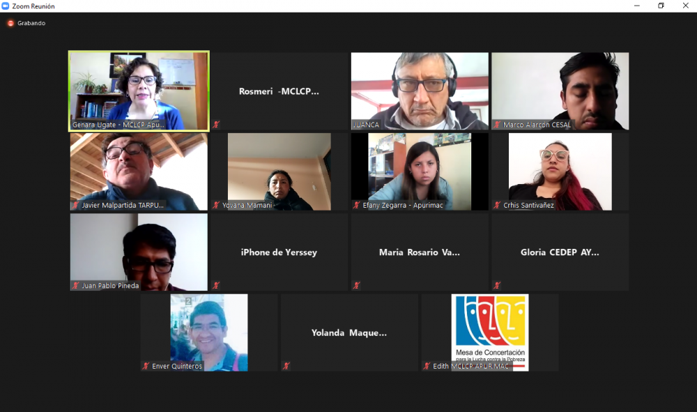 Con participación de 33 participantes, miembros de la Comisión Ambiental Regional – CAR, se realizó la tercera sesión virtual, con el objetivo de abordar las actividades del Plan de trabajo anual 2021, propuesta que viene siendo elaborada con el apoyo de la ONG Practical Action.