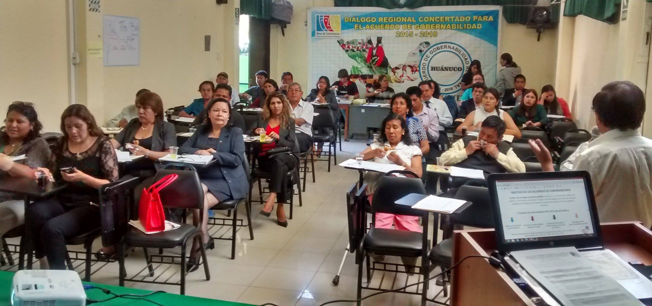 II Foro Regional: Seguimiento Concertado a los Acuerdos de Gobernabilidad, Objetivos de Desarrollo Sostenible y reunión del Comité Ejecutivo Regional de la MCLCP Huánuco, con el Objetivo: aprobar y validar los avances del Seguimiento Concertado Eje social de los “Acuerdos de Gobernabilidad para el Desarrollo Humano Integral y lucha contra la pobreza Huánuco 2015 – 2018”, a fin de generar un primer reporte. Participación destacada de la Vice Gobernadora Regional de Huánuco - Dra. Rosalía Storck Salazar, acompañada de la Consejera Regional por Huánuco - Srta. Nitzy Orneta.importante, asi como del CER y de los/las coordinadores (as) Provinciales, Distritales y de Centros Poblados de las Mesas de Concertación. (Dos de Mayo, Huamalíes - Llata, Ambo, Pachitea - Panao, Lauricocha - Jesús, Santa María del Valle, Puente Duran, San Pedro de Cani. Así como también fueron convocados los/las coordinadores(as) de las distintas temáticas, autoridades y líderes. El evento estuvo presidido por el Coordinador Regional de la MCLCP de Huánuco - Ing, Severo Tiburcio Soto.