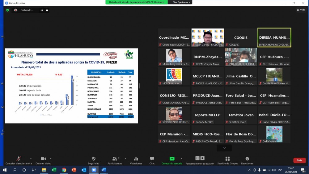 Leer másPresentación de avance de la vacunación por COVID-19 en el departamento de Huánuco y la socialización del documento: proceso participativo, rumbo al encuentro nacional de Mesas de Concertación, el Comité Ejecutivo de la Mesa de Concertación para la Lucha Contra la Pobreza Huánuco