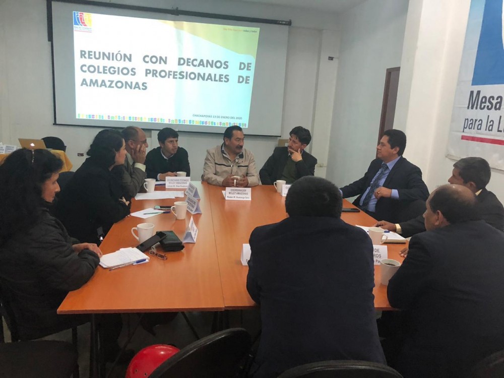 La Mesa de Concertación Para la Lucha Contra la Pobreza - Amazonas se reunió con los decanos de los Colegios Profesionales de la Región con el objetivo de designar un representante ante el Comité Ejecutivo Regional (CER) de la Mesa. Participaron ocho colegios profesionales.