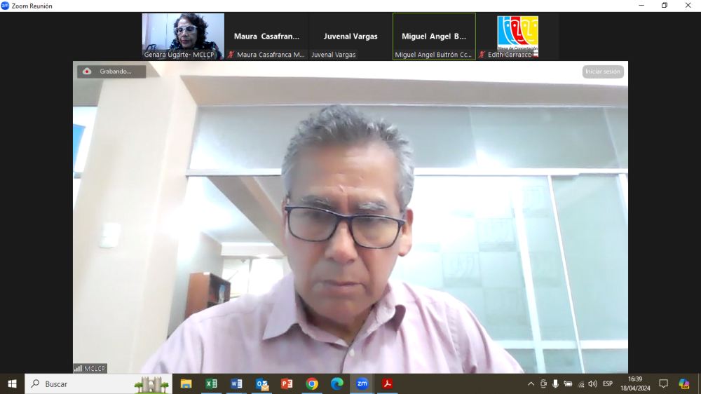 En la fecha se desarrolló la Asistencia técnica al Comité de Vigilancia regional del presupuesto participativo 2024 y al comité de vigilancia provincial de Andahuaylas, por parte del representantes del Grupo Propuesta Ciudadana: Epifanio Baca y Pablo Villa del Centro Bartolomé de las Casas – CBC, actividad considerada en el plan de trabajo del CV regional, la misma que se desarrolló de manera híbrida, presencial en la sala de reuniones de la MCLCP Apurímac y Virtual mediante la plataforma del zoom de la MCLCP. La convocatoria fue emitida por la MLCP Apurímac mediante Carta Múltiple 002-2024.
