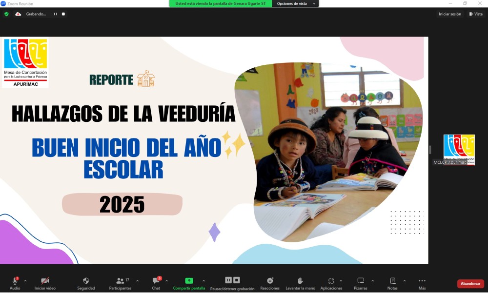 La Mesa de Concertación para la Lucha contra la Pobreza (MCLCP) Apurímac presentó ante el Comité Ejecutivo Regional (CER) los principales hallazgos de la veeduría ciudadana al Buen Inicio del Año Escolar (BIAE) 2025, con información recopilada en 106 instituciones educativas rurales de la región.