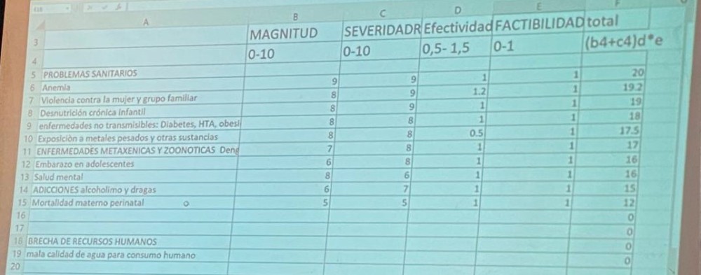 Para la priorización de principales problemas de salud a nivel regional, se utilizó la metodología HANLON, dando puntuación con las consideraciones de: magnitud, severidad, efectividad/eficacia, Factibilidad, teniendo el resultado de acuerdo a la matriz: