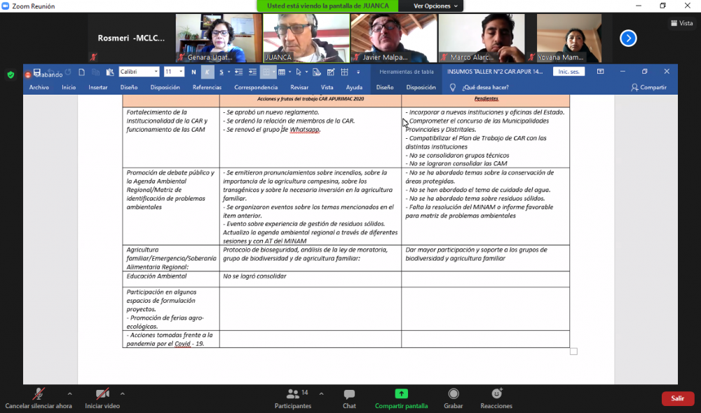 Con participación de 25 miembros integrantes de la Comisión Ambiental regional CAR, se desarrolló el 14 de abril, la 2da reunión de trabajo para la elaboración del plan de trabajo 2021.