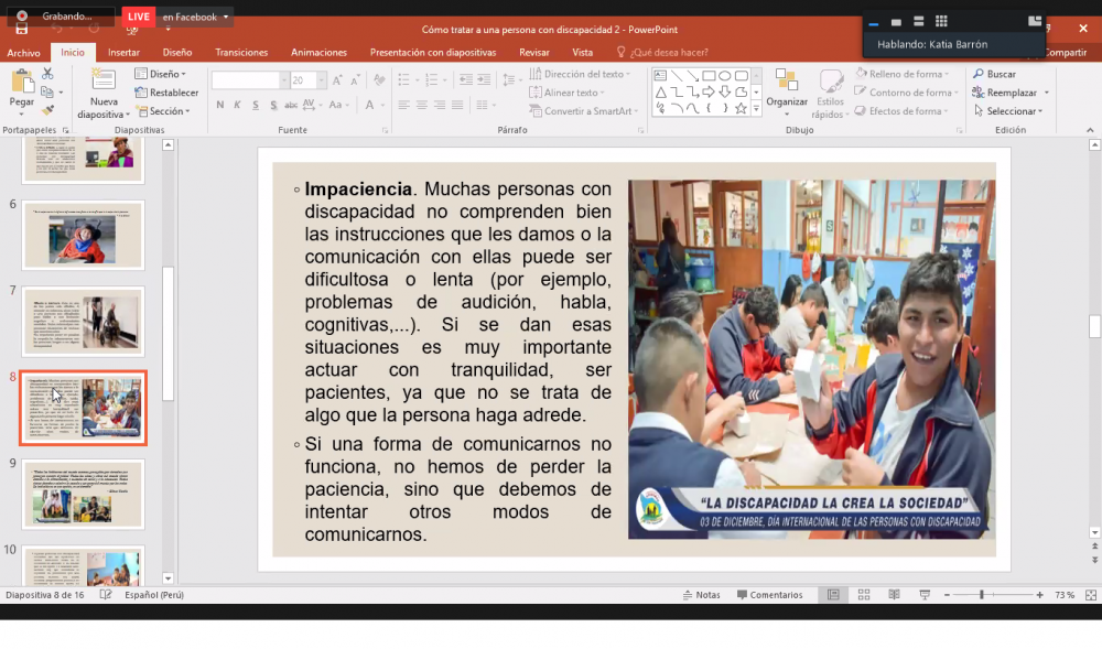 En esta sesión virtual se analizó temas como la calidad de atención en servicios, el proceso de certificación, la interacción e integración dentro de la sociedad a personas con discapacidad, los indicadores de la Ley N°29973, y los avances a nivel regional en la promoción de los derechos de las personas con discapacidad. Un avance importante a nivel de la región es que ya se cuenta con 27 médicos certificadores, quienes ya iniciaron la evaluación para otorgar el certificado de discapacidad.