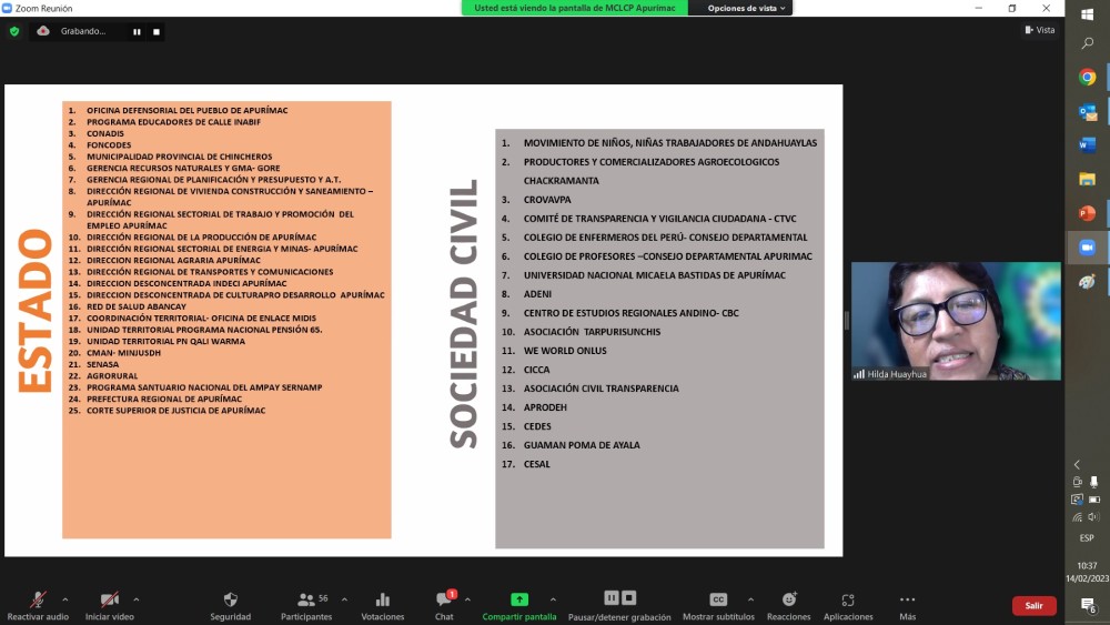 A convocatoria de la Coordinación Regional de Apurímac, se realizó la primera reunión de la MCLCP Apurímac, con la finalidad de instalar el Comité Ejecutivo Regional de la MCLCP para el 2023.