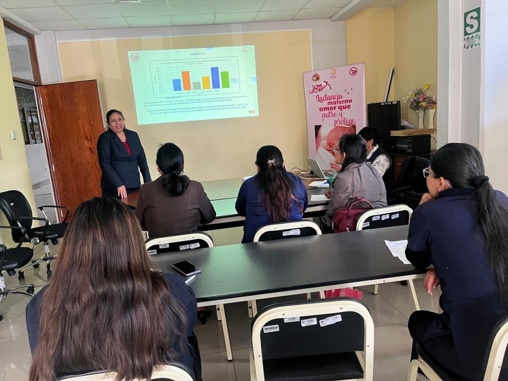 Durante la reunión, Magda López (DIRESA) alertó sobre la preocupante disminución de las tasas de lactancia materna exclusiva, tanto a nivel internacional como nacional y regional, destacando sus beneficios esenciales para la salud del niño y la madre, así como el papel clave del apego temprano en el desarrollo infantil.