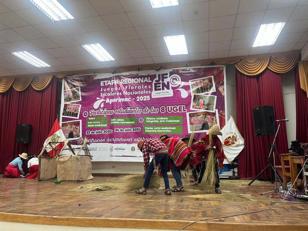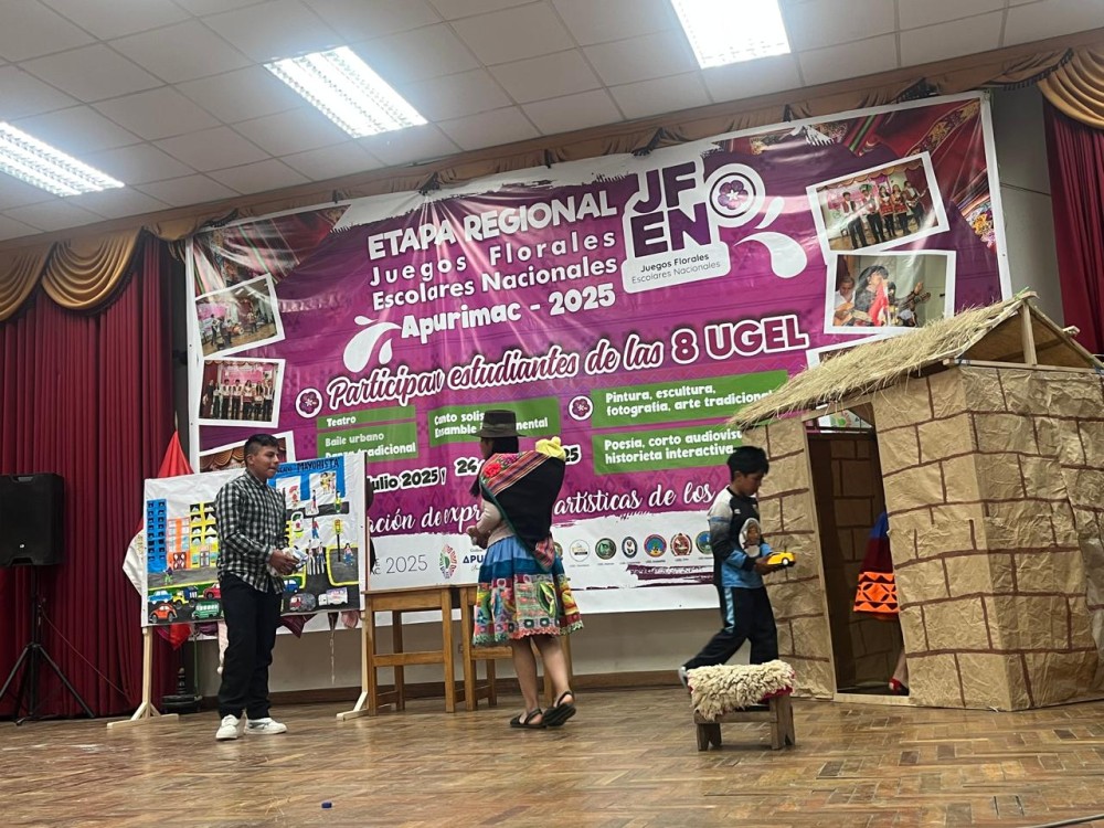 En esta oportunidad, el auditorio de la Institución Educativa Nuestra Señora de las Mercedes fue escenario de las presentaciones teatrales, donde estudiantes de las ocho UGELs de la región dieron muestra de talento, sensibilidad y compromiso con la cultura, abordando temáticas vinculadas a su entorno y problemáticas sociales. Destacó especialmente la representación de obras como “Agua” y “El Lunarejo” de José María Arguedas, que invitan a reflexionar sobre el poder y la desigualdad en torno al acceso al agua.