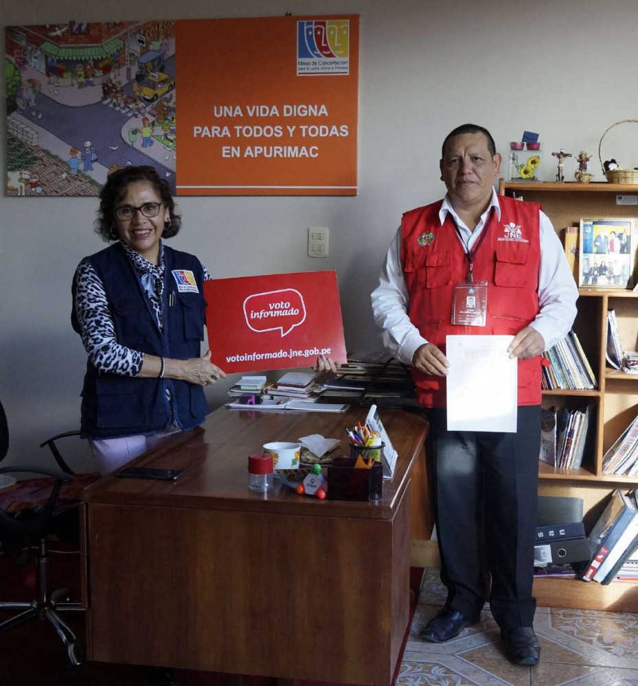 El 19 de diciembre, en las instalaciones de la MCLCP Apurímac, se reunieron miembros del Jurado Nacional de Elecciones y la Secretaria Técnica de la Mesa de Concertación para la Lucha Contra la Pobreza - Apurímac con la finalidad de suscribir el Pacto social “Por un voto informado”.
