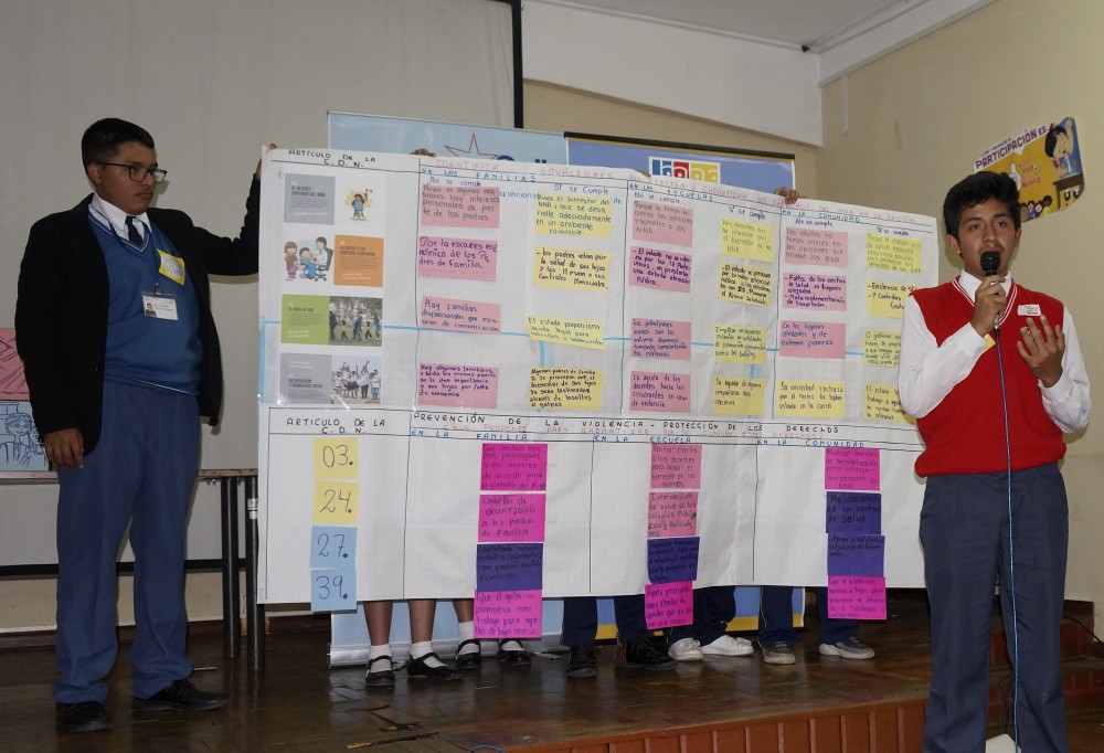El evento se desarrolló en el auditorio del Gobierno Regional Apurímac, el día 25 de Junio con la participación de 55 niños, niñas y adolescentes de 9 a 17 años de edad, de la provincia de Abancay, distrito de Lambrama, comunidad de Caype, y provincia de Chalhuanca, quienes en una dinámica reunión de trabajo identificaron las situaciones de violencia o desprotección que los aqueja en la familia, escuela y comunidad, para luego plantear alternativas para garantizar que se cumplan sus derechos.