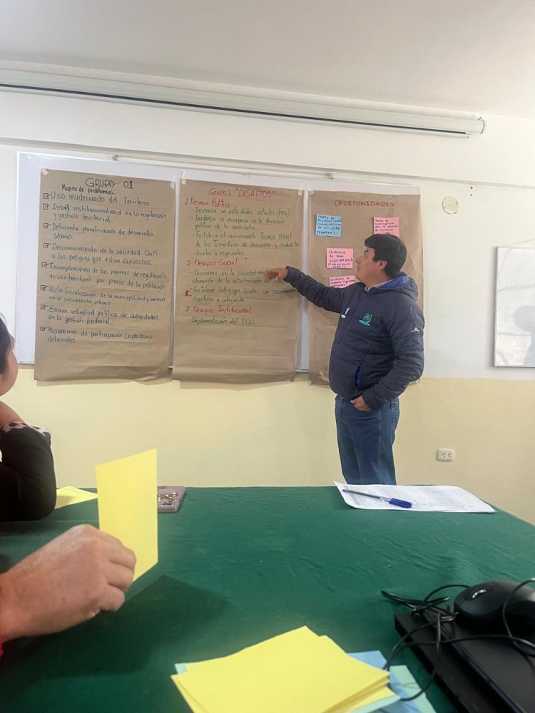 Durante el taller, la Coordinadora Regional de la Mesa de Concertación para la Lucha contra la Pobreza (MCLCP) destacó los avances alcanzados en la primera fase del diálogo e invitó a las instituciones a mantener su compromiso. Posteriormente, especialistas del Ministerio de Vivienda, Construcción y Saneamiento (MVCS-CAC) presentaron el marco normativo y técnico vigente, mientras que el CENEPRED enfatizó la necesidad de incorporar el enfoque de gestión del riesgo de desastres en la planificación urbana.