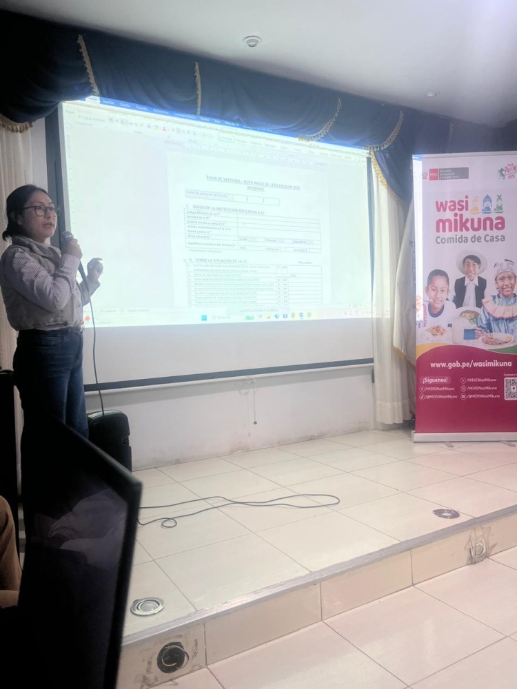 En una reunión realizada en el Instituto Peter Druker, se socializó la ficha con 34 preguntas validadas y se recogieron aportes sobre servicios higiénicos, almacenamiento de alimentos y acceso a agua potable en las IIEE.