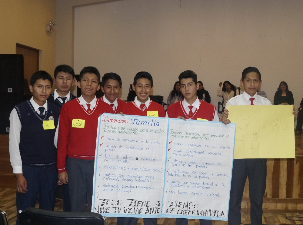 Seguidamente luego de algunas reflexiones sobre la prevención del embarazo en adolescentes, se inicia la conformación de 5 grupos de trabajo y discusión por temas, para finalmente compartir sus trabajo se intercambiar reflexiones ante el Panel de Autoridades integrado por PNP, Defensoría del Pueblo, Unidad de Protección Especial, DIRESA, DEMUNA Abancay, UGEL Abancay y la Dirección Regional de Educación; quienes dieron sus percepciones y recogieron los aportes y propuestas de los adolescentes para la prevención del embarazo en adolescente.