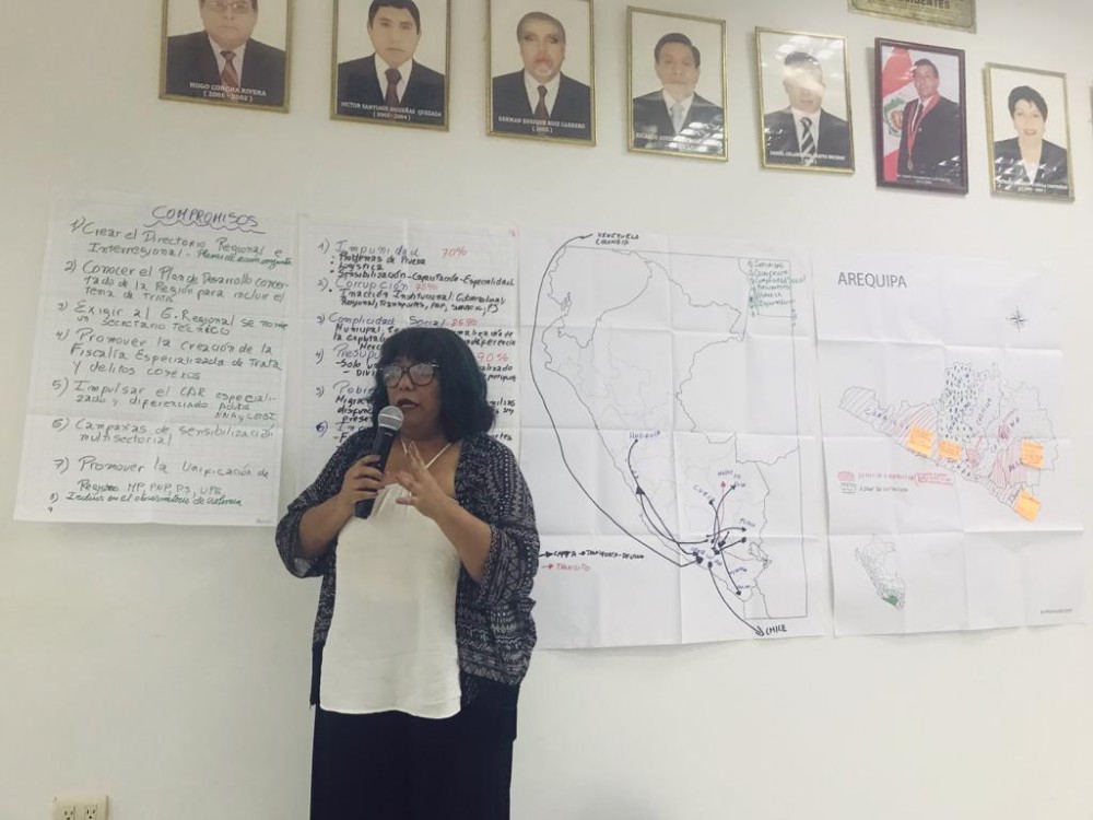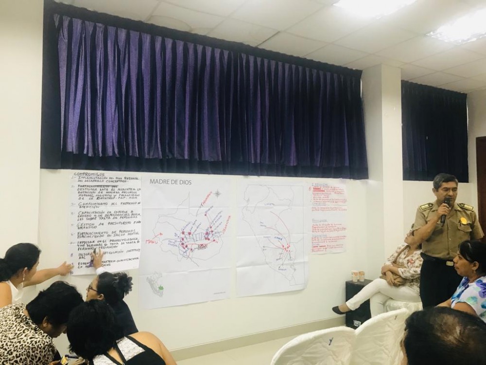 Se analizó el contexto estadístico normativo de los delitos de explotación humana en el país, específicamente en las regiones del Sur, se socializó evidencia desde la investigación, en los temas de explotación humana en las regiones de Puno, Piura y Madre de Dios y se desarrolló capacidades de gestión presupuestal para el abordaje de prevención, recuperación y reintegración de víctimas de trata de personas y ESNNA.