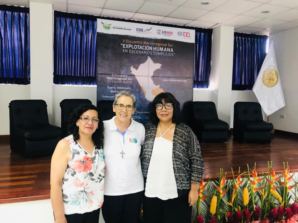Del 01 al 03 de julio se realizó en Puerto Maldonado - Madre de Dios, el V ENCUENTRO MACRO REGIONAL SUR denominado “Explotación humana en escenarios complejos, participaron las Regiones de Lima, Cusco, Madre de Dios, Puno y Arequipa. Invitados Piura y Loreto. Con el objetivo de generar evidencias para la toma de decisiones, evidenciar la respuesta del Estado y agendar nuevas estrategias ante la problemática de Trata de Personas y ESNNA.