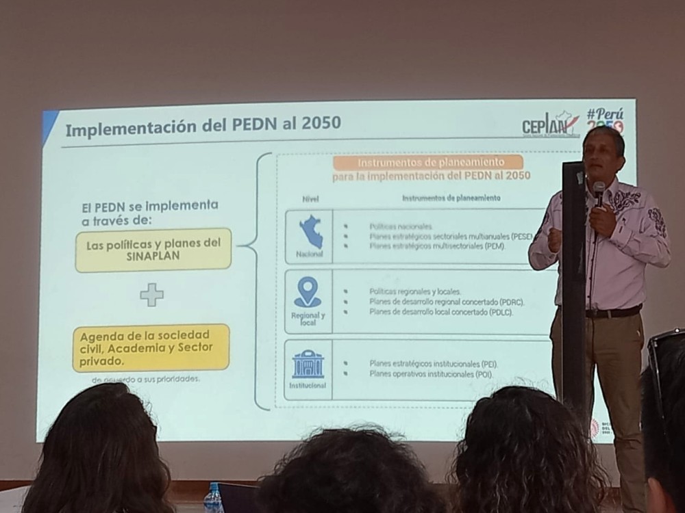 La jornada comenzó con la exposición del Plan Estratégico Nacional al 2050 por parte del especialista de CEPLAN, seguido de la presentación de la metodología de la II Fase de la formulación del Plan de Desarrollo Regional Concertado.