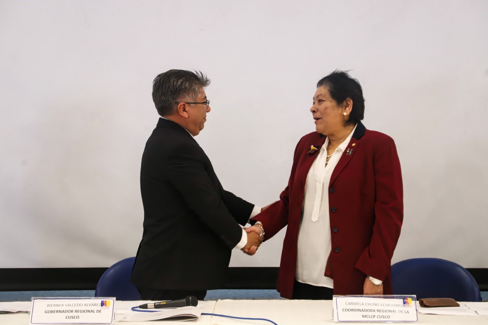 Por su parte, Carmela Chung se refirió a las difíciles etapas actuales y que requieren con suma urgencia acciones concertadas, acciones dialogantes en toda la problemática regional. “Vamos a hacer un llamado desde la Mesa a una mayor participación activa de los Municipios distritales y provinciales, porque la acción por el Cusco requiere el esfuerzo de todos y todas, no solamente son instituciones del gobierno, requiere de la ciudadanía porque la ciudadanía somos todos del Estado” refirió durante su intervención.