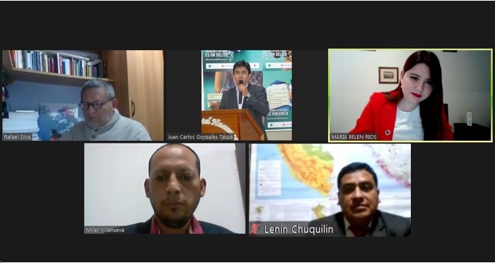 En el panel participaron Rafael Silva Gutiérrez del equipo de la MCLCP Nacional; María Belén Ríos, especialista en Desarrollo Sostenible; Miller Villanueva Santamaría, director de la DRTPE Huánuco; Lenin Chuquilin Hernandez asesor del Parlamento Juvenil y RENJUDH.