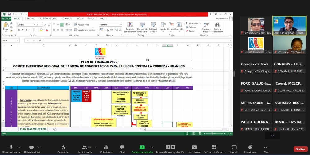 La MCLCP de Huánuco convocó a una reunión virtual con la finalidad de instalar el Comité Ejecutivo Regional (CER) para el periodo 2022, así como indicar cuales son los objetivos, funciones y explicar el plan del trabajo del CER para su debida aprobación.