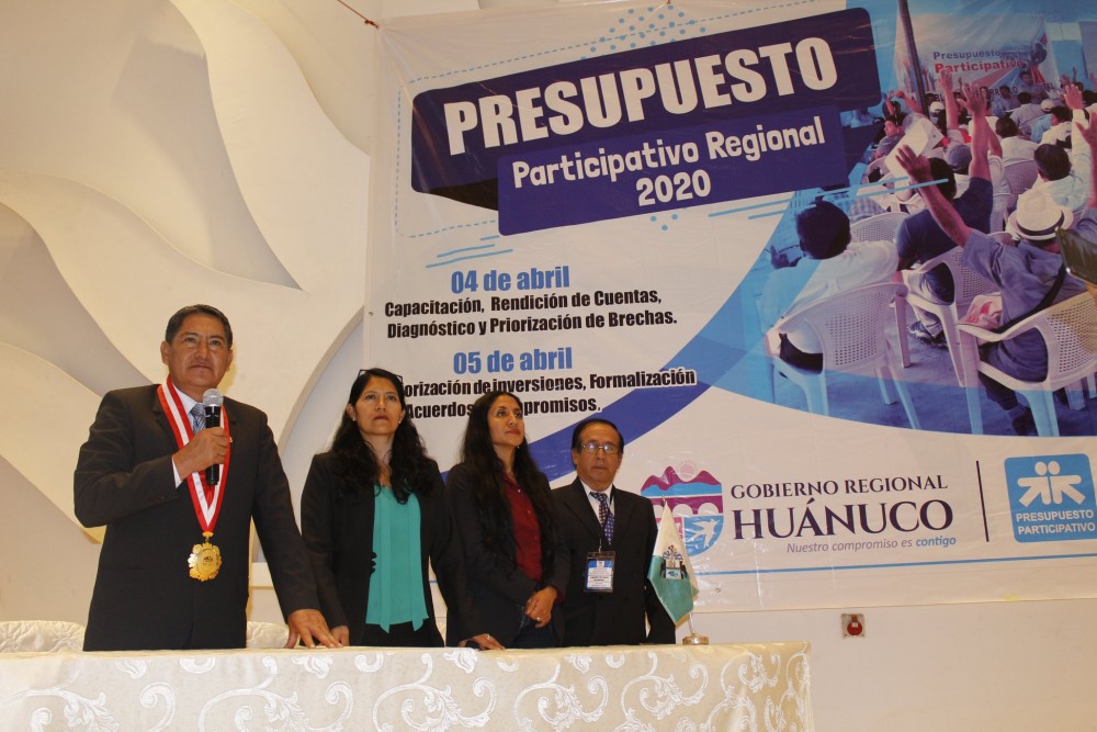 El jueves 04 de abril se llevó a cabo el primer día de taller del Presupuesto Participativo basado en Resultados 2020 (PPbR) del Gobierno regional de Huánuco, presidido por el Gobernador Regional de Huánuco, Juan Alvarado Cornelio y organizado por la Gerencia de planeamiento, presupuesto y acondicionamiento territorial, equipo técnico regional, CCR, agentes participantes acreditados (as) y ciudadanía interesada.