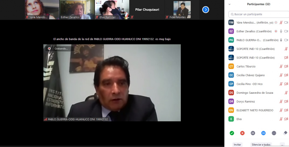La Oficina Departamental de Estadística e Informática de Huánuco organizó la Cuarta Reunión de Ordinaria del Comité de Coordinación Interinstitucional Departamental de Estadística e Informática 2020 (CCOIDEI HUÁNUCO), el día 29 de diciembre en horas de la mañana.