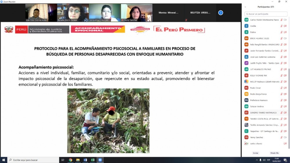 El día 10 de marzo se realizó la reunión de Mesa de trabajo de la Dirección General de Búsqueda de Personas Desaparecidas - DGBPD en Huánuco a través de la plataforma digital ZOOM.