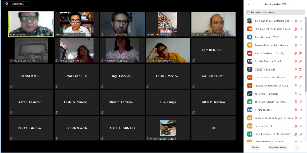 A la convocatoria se dieron cita los representantes de instituciones de Estado como: Gerencia Regional de Desarrollo Social del Gobierno Regional de Huánuco; Consejo Regional Hco, Of de Enlace Territorial del MIDIS Huánuco, Programa Nacional Aurora - CEM del MIMP, INEI, SUNASS, Comité de Transparencia y Vigilancia Ciudadana; y representantes de la Sociedad Civil: Asociación Paz y Esperanza, Fraternidad de Pastores, CARITAS Huánuco, COPARE, Diócesis de Huánuco, Red Interquorum, Tambos Pesquera Diamante, Red Nacional de Promoción de la Mujer, ONG Islas de Paz Bélgica, Temática Joven, Cultura Steam y Promotora Regional de la MCLCP Huánuco. Invitado: Ex coordinación Proyecto anti corrupción de la PNUD en Hco.