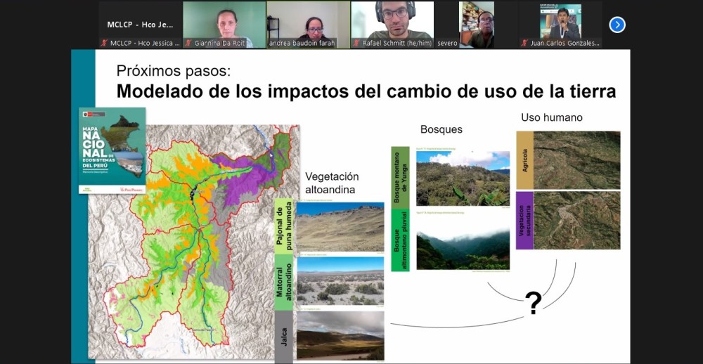 En la reunión la Organización The Natural Capital Project en Cooperación con la Universidad Stanford de EUA, presentan el proyecto "Beneficios de las áreas manejadas sosteniblemente para el desarrollo de Infraestructura sostenible en la cuenca del Amazonas" que será financiado por la Fundación Moore en colaboración con socios en Perú y China del 2020 al 2022.