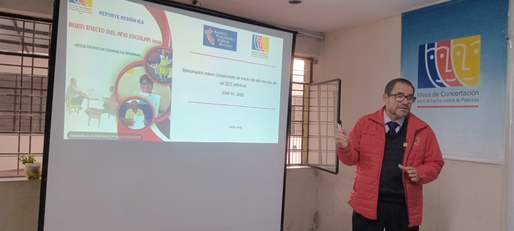 El Coordinador Regional de la Mesa de Concertación, Gerardo Arévalo Arévalo, destacó la puesta en común de los resultados realizados a nivel nacional, destacando que, en alianza con el Comité de Transparencia y Vigilancia Ciudadana, se aplicaron encuestas en 110 IIEE de nivel Inicial y Primaria, ubicadas en las zonas urbana y rural, contándose con el apoyo de la Dirección Regional de Educación de Ica.