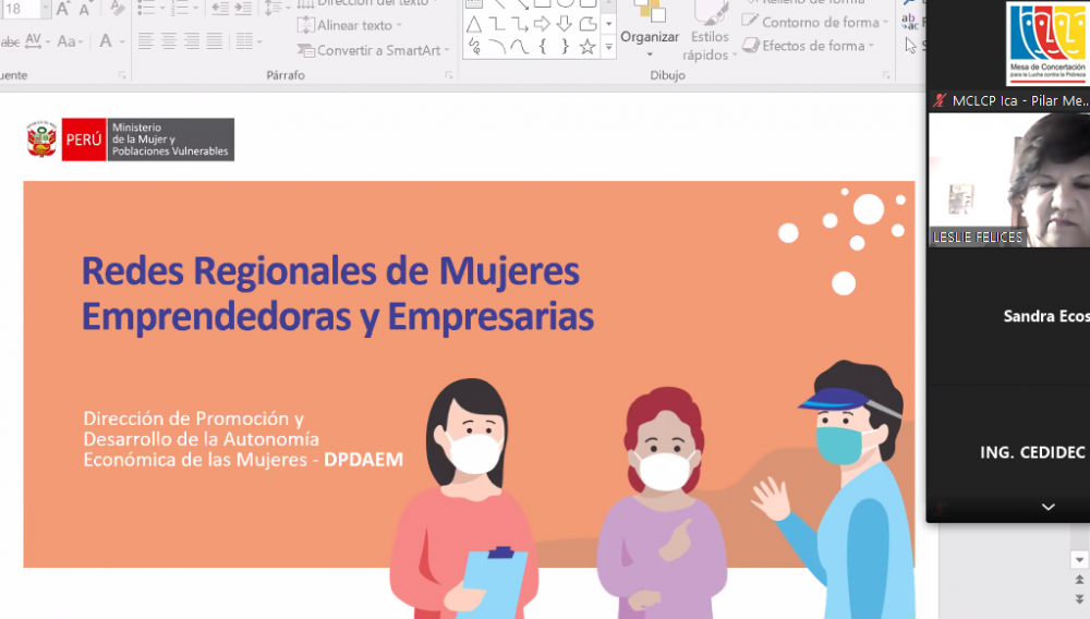 Mediante una sesión virtual, se instaló la Mesa Multiactor, en cumplimiento a la Ordenanza Regional N° 0018-2020-GORE.ICA, que establece promover el empoderamiento y autonomía económica de las mujeres, a fin de mejorar sus condiciones de vida, sobre todo en el contexto de la pandemia por Covid-19, que ha traído mayor pobreza y desigualdad para ellas, convirtiéndose este espacio, en una herramienta participativa para surgir y aportar al desarrollo de la región.