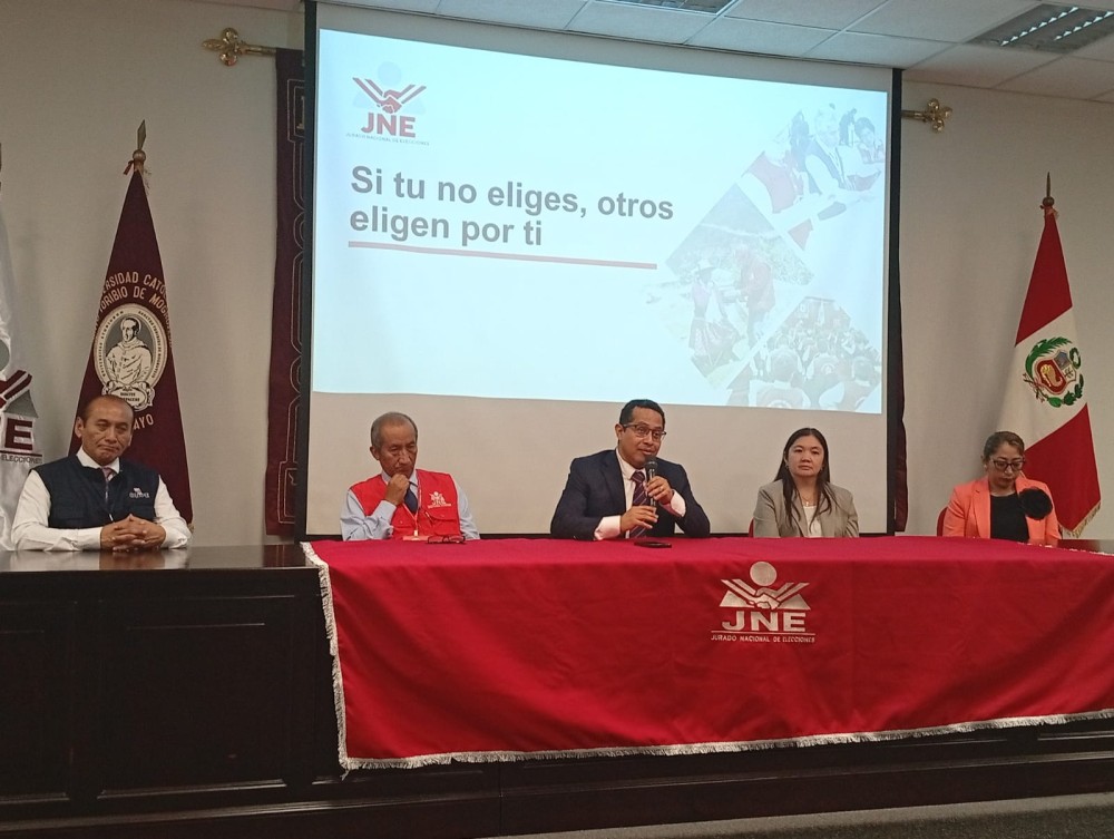 En este evento también participaron el presidente del jurado electoral especial de Chiclayo para las elecciones generales 2026, Cipriano Purihuaman, el jefe de la oficina desconcentrada de procesos electorales- Chiclayo (ODPE), Luis Tecsihua Quispe, los miembros plenos del JEE-Chiclayo, miembros de la ODPE, jóvenes, docentes e invitados.