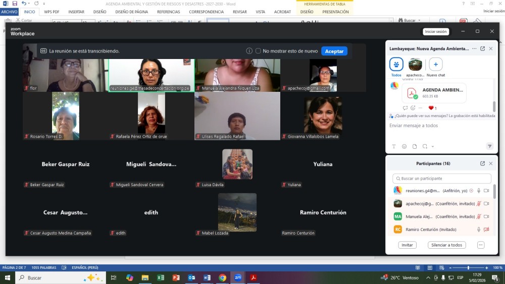 Lambayeque, 5 de febrero de 2026.– El Grupo de Seguimiento de la Mesa de Concertación para la Lucha contra la Pobreza (MCLCP) Lambayeque sostuvo una reunión virtual con el propósito de dialogar sobre las nuevas prioridades que formarán parte de la Agenda Ambiental y de Gestión de Riesgos de Desastres para el periodo 2027–2030.