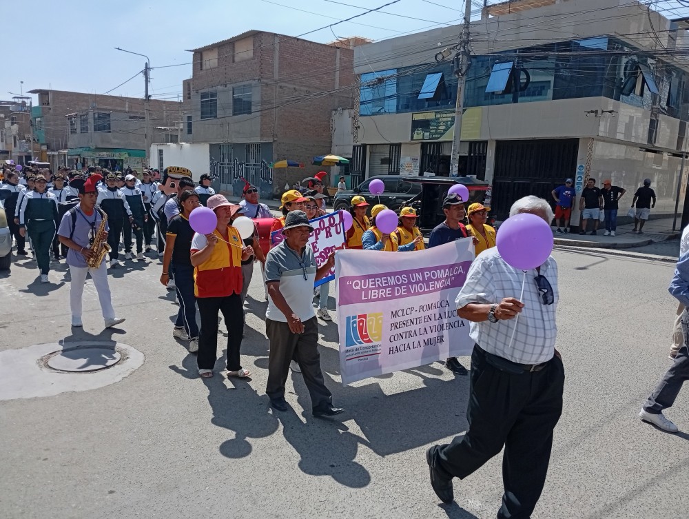 Participaron representantes de instituciones locales y regionales, entre ellas la Policía Nacional del Perú, la Defensoría del Pueblo, la Asociación de Jubilados, el Centro Integral del Adulto Mayor, la I.E. Gabriela Mistral, la Asociación de Pomalqueños y las Juntas Vecinales, entre otras organizaciones que se sumaron al llamado por una sociedad libre de violencia.