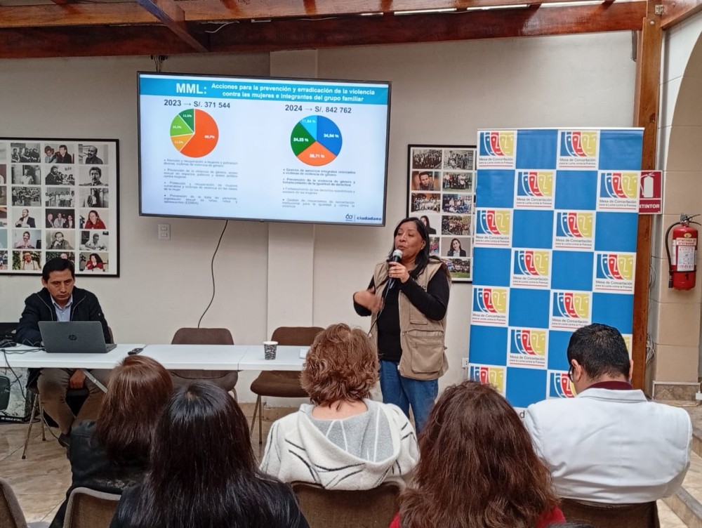 En la séptima reunión del Grupo de Trabajo de Prevención y Atención de la Violencia hacia la Mujer (GTPAVHM) de la Mesa de Concertación para la Lucha contra la Pobreza de Lima Metropolitana (MCLCP LM), se presentaron los resultados preliminares del informe “Presupuestos distritales para la prevención de la violencia de género en Lima Metropolitana 2024”, así como los resultados de la aplicación de la ficha de seguimiento a las Instancias Distritales de Concertación para la prevención, sanción y erradicación de la violencia contra las mujeres y los integrantes del grupo familiar (IDC) de 33 distritos de Lima Metropolitana.