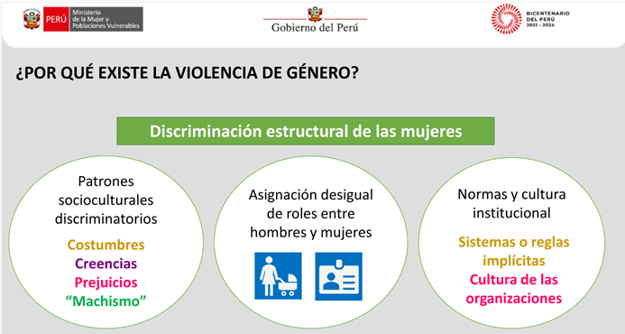 El curso que se estructuró en tres sesiones virtuales, fueron conducidas por especialistas del Ministerio de la Mujer y Poblaciones Vulnerables: la primera sesión estuvo a cargo de Esther Lourdes Alata de la Dirección de Políticas para una Vida Libre de Violencia de la Dirección de la Dirección General Contra la Violencia de Género, la segunda sesión fue dirigido por Victoria Ponce del Castillo de la Dirección de Políticas de Igualdad de Género y no Discriminación; quienes compartieron exposiciones sobre el marco conceptual de la violencia contra las mujeres, los tipos de violencia y los procesos para su abordaje, así como el enfoque de género e interseccionalidad en el abordaje de la violencia contra la mujer, respectivamente.