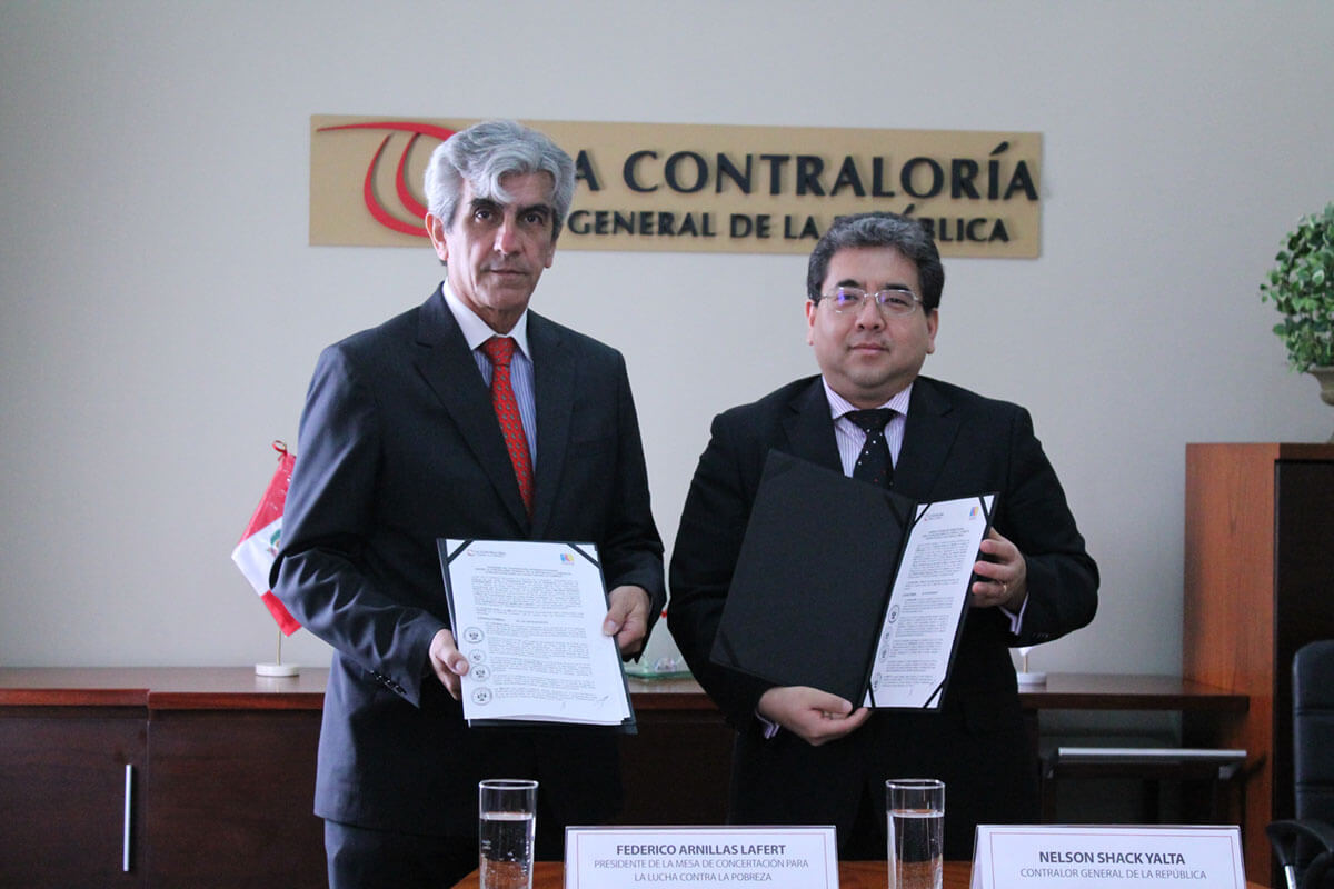 La Contraloría General de la República y la Mesa de Concertación para la Lucha contra la Pobreza firmaron hoy un convenio de cooperación institucional para promover la participación ciudadana como veedores y monitores voluntarios en el uso y destino de los recursos y bienes del Estado en la Reconstrucción con Cambios.