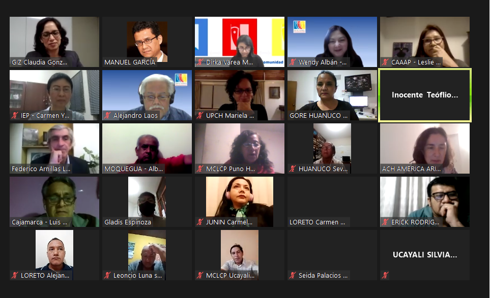 La Mesa de Concertación para la Lucha contra la Pobreza (MCLCP) llevó a cabo ayer jueves 10 de octubre el conversatorio virtual "Aportes para contribuir a mejorar los Servicios de Salud con Enfoque Intercultural en el Ámbito Amazónico". El evento se realizó en conjunto con la Unión Europea y la Cooperación Alemana implementada por la Deutsche Gesellschaft für Internationale Zusammenarbeit (GIZ) GmbH.