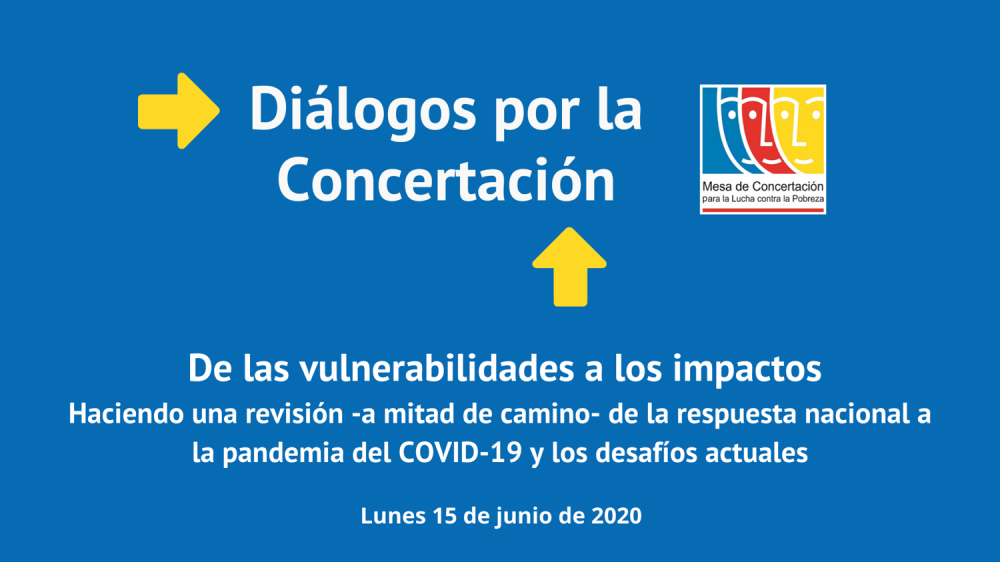 El COVID-19 nos exige una revisión constante a la respuesta nacional a la pandemia, a los impactos en la calidad de vida de la población y las vulnerabilidades que amenazan el bienestar de todas las personas. Por ello, la Mesa de Concertación para la Lucha contra la Pobreza convocó a los destacados especialistas Francisco Santa Cruz, coordinador de los IDH de PNUD, Javier Herrera, Director de Investigaciones y representantes para el Perú del IRD, Giovanna Vásquez Luque, Gerente de Conveagro y Martha cuentas Anci, presidenta de la Asociación Nacional de Centros ANC, Directora Ejecutiva de FOVIDA y representante en CONADES, quienes participaron en el Diálogo por la Concertación del lunes 15 de junio.