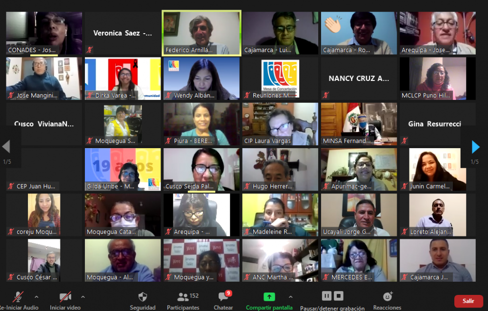 Con esta reunión, la Mesa busca conocer los alcances de la política del Ministerio de Salud en esta coyuntura de emergencia sanitaria y compartir los comentarios y aportes de los integrantes de este espacio de concertación. Estuvieron presentes 211 representantes de la sociedad civil, de sectores del Estado y equipos técnicos de la MCLCP.