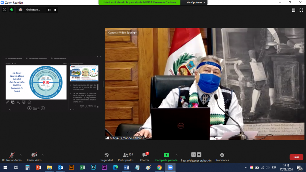 La red nacional de Mesas de Concertación para la Lucha contra la Pobreza sostuvo ayer una sesión con participación del Ministerio de Salud a fin de dialogar sobre las estrategias del sector en el marco de la emergencia sanitaria y la respuesta al COVID-19. La ministra de Salud, Pilar Mazzetti, saludó la presencia de los integrantes de la MCLCP e hizo un llamado a que se realicen recomendaciones viables desde la sociedad civil y el consenso de la Mesa. El asesor del despacho ministerial Fernando Carbone quedó en su representación y compartió los principales lineamientos de intervención del sector, junto a un grupo de altos funcionarios.