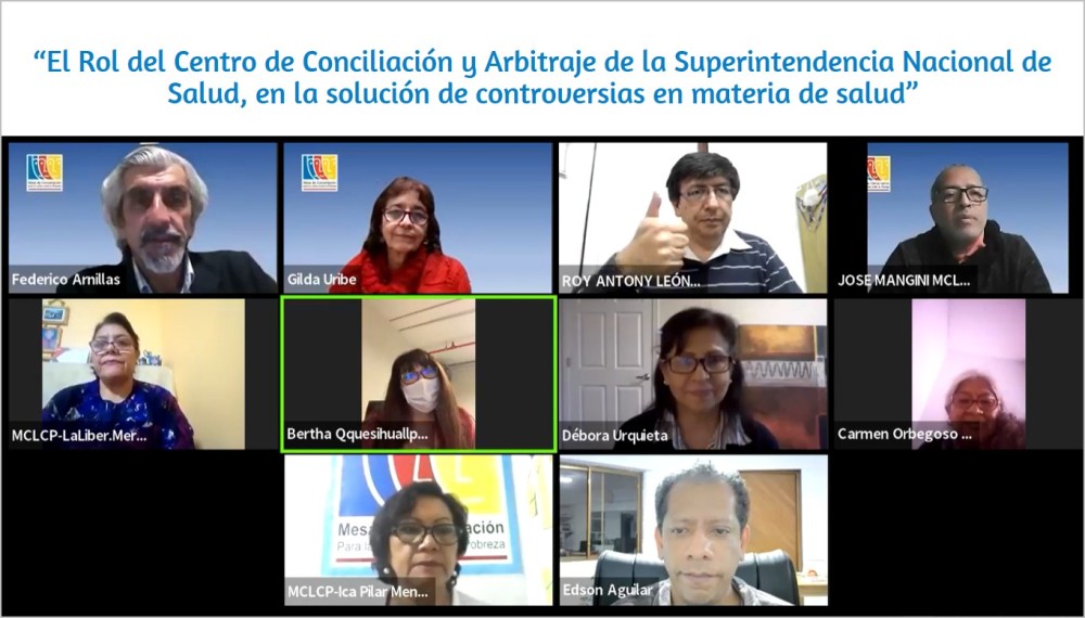 El 10 de mayo se realizó el conversatorio virtual “El Rol del Centro de Conciliación y Arbitraje de la Superintendencia Nacional de Salud, en la solución de controversias en materia de salud”, evento organizado por la Mesa de Concertación para la Lucha contra la Pobreza (MCLCP) y la Superintendencia Nacional de Salud (SUSALUD), con el objetivo de promover y fortalecer el acceso a los servicios de salud.