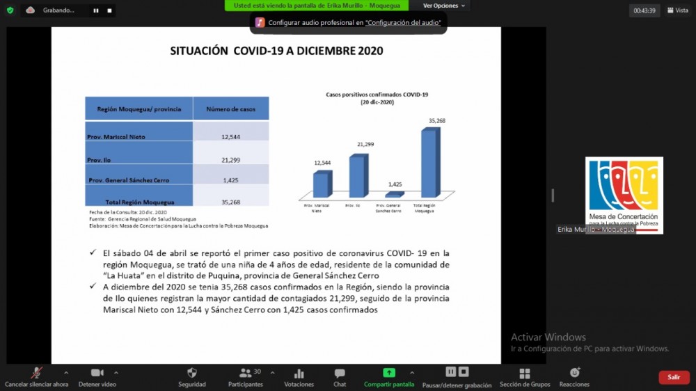 El jueves 17 de febrero se instaló el Comité Ejecutivo Regional - CER de la Mesa de Concertación para la Lucha contra la Pobreza – MCLCP Moquegua periodo 2021.