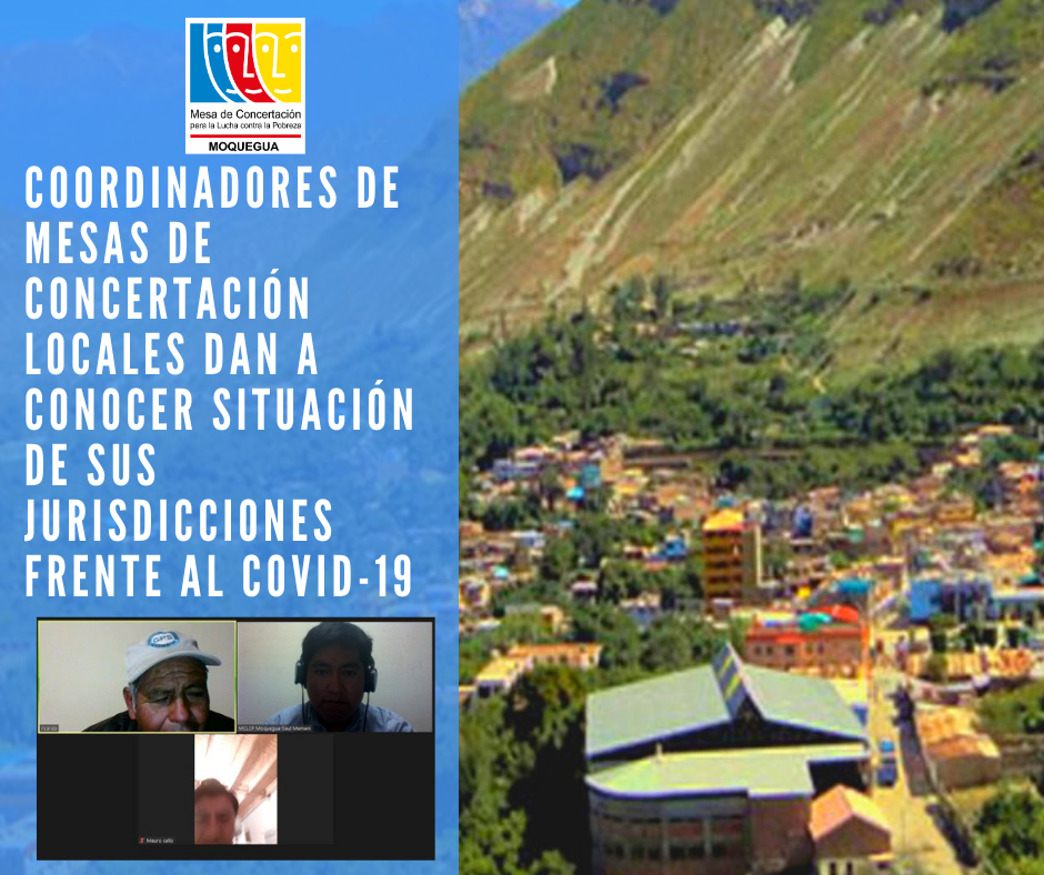 Recientemente las Mesas de Concertación para la Lucha contra la Pobreza de la provincia General Sánchez Cerro de la región Moquegua dieron a conocer la situación actual de sus jurisdicciones frente al impacto generado por el coronavirus - COVID-19.