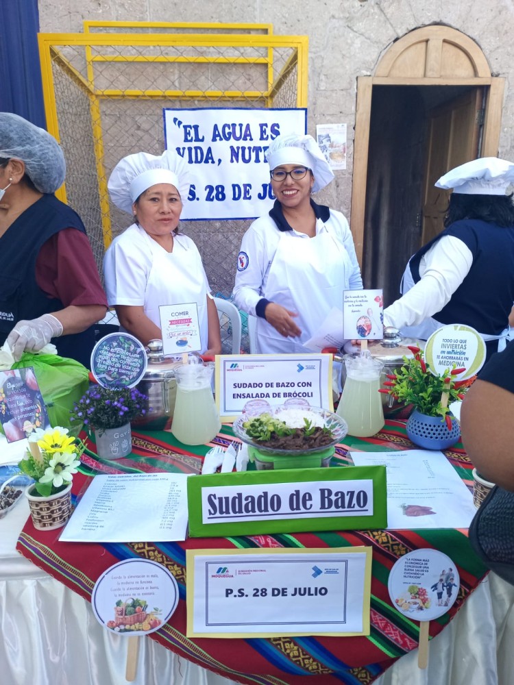 Personal de los Puestos y Centros de Salud presentaron opciones de alimentación y nutrición saludable, a través de la ingesta de alimentos ricos en hierros, económicos, de fácil preparación y de buen sabor; los comedores populares prepararon platos nutritivos con insumos que reciben en las raciones entregadas por la Municipalidad Provincial de Mariscal Nieto; mientras que el Programa del Vaso de Leche de la comuna edil, opciones de loncheras saludables.