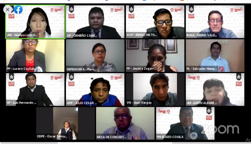 A través de una ceremonia virtual, el miércoles 10 de febrero quince organizaciones políticas que participarán en las Elecciones Generales 2021; y 05 instituciones adherentes de Moquegua, suscribieron el Pacto Ético Electoral (PEE), promovido por el Jurado Nacional de Elecciones (JNE).