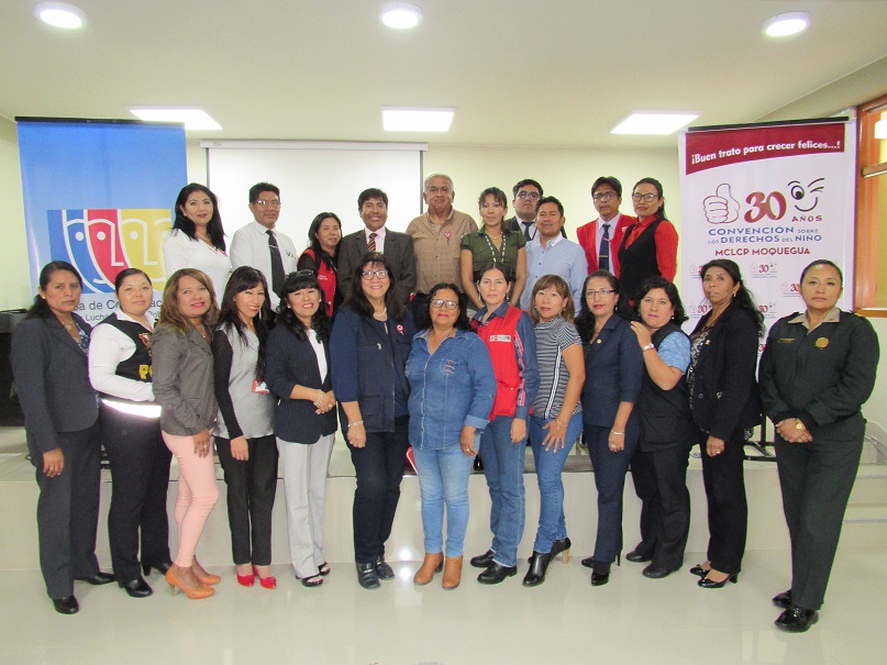 Con el objetivo de conocer las principales dificultades en la labor de los operadores del sistema de protección, así como propuestas para la prevención de la violencia, en las escuelas, los hogares y espacios públicos; la Mesa de Concertación para la Lucha contra la Pobreza de Moquegua (MCLCP) desarrolló el “Taller de consulta y formulación de propuestas frente a la problemática de violencia hacia las niñas, niños y adolescentes”, en el marco de la Campaña “Buen Trato para Crecer Felices” por los 30 Años de la Convención Internacional sobre los Derechos del Niño. La actividad se llevó a cabo la mañana del viernes 05 de julio, en el auditorio de la Gerencia Regional de Transportes y Comunicaciones de Moquegua.