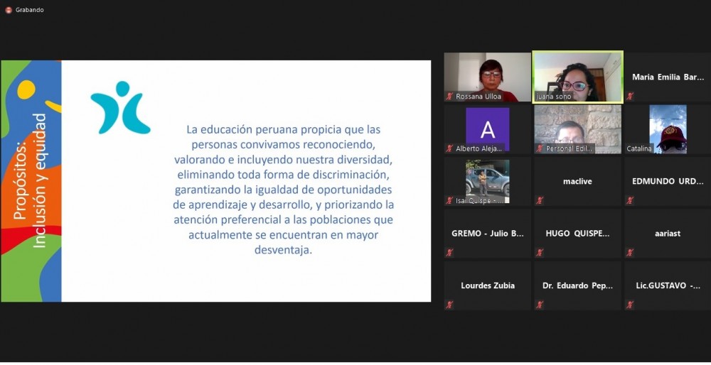 Rosana Ulloa Jara, coordinadora macroregional del Proceso de Consulta del Proyecto Educativo Nacional – PEN 2036, dio la bienvenida a los participantes e indicó que el PEN ha de servir como marco orientador del Proyecto Educativo Regional.