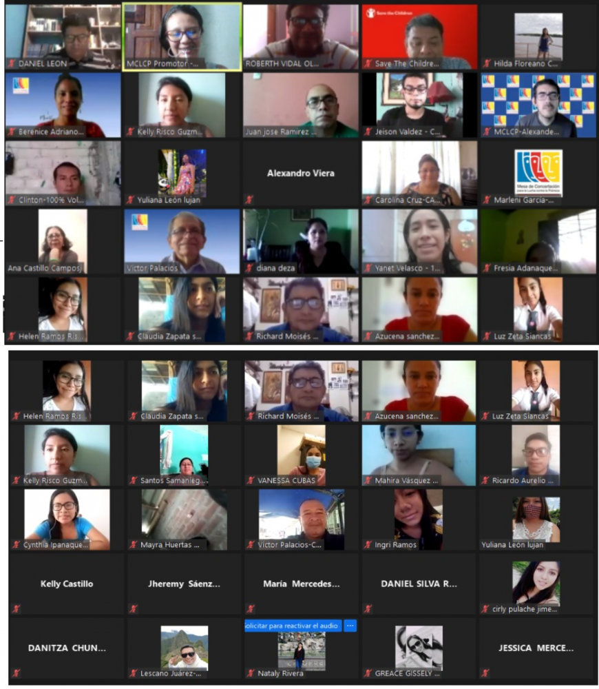 Adolescentes y jóvenes de la región Piura participaron del taller virtual regional “Agenda Joven Rumbo al Bicentenario”, consulta regional impulsada por la Mesa de Concertación para la Lucha contra la Pobreza-MCLCP Piura en alianza con CANAT, COREJU Piura, Parlamento Joven, Plan Internacional, Red Interquorum, Save the Children y CTVC Piura.