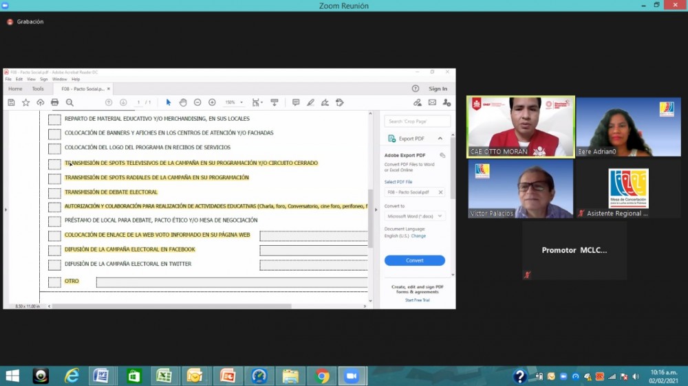 Con la finalidad de promover la emisión de un voto informado, en el marco de las Elecciones Generales 2021, la MCLCP y JNE suscribieron el martes 2 de febrero un Pacto Social.